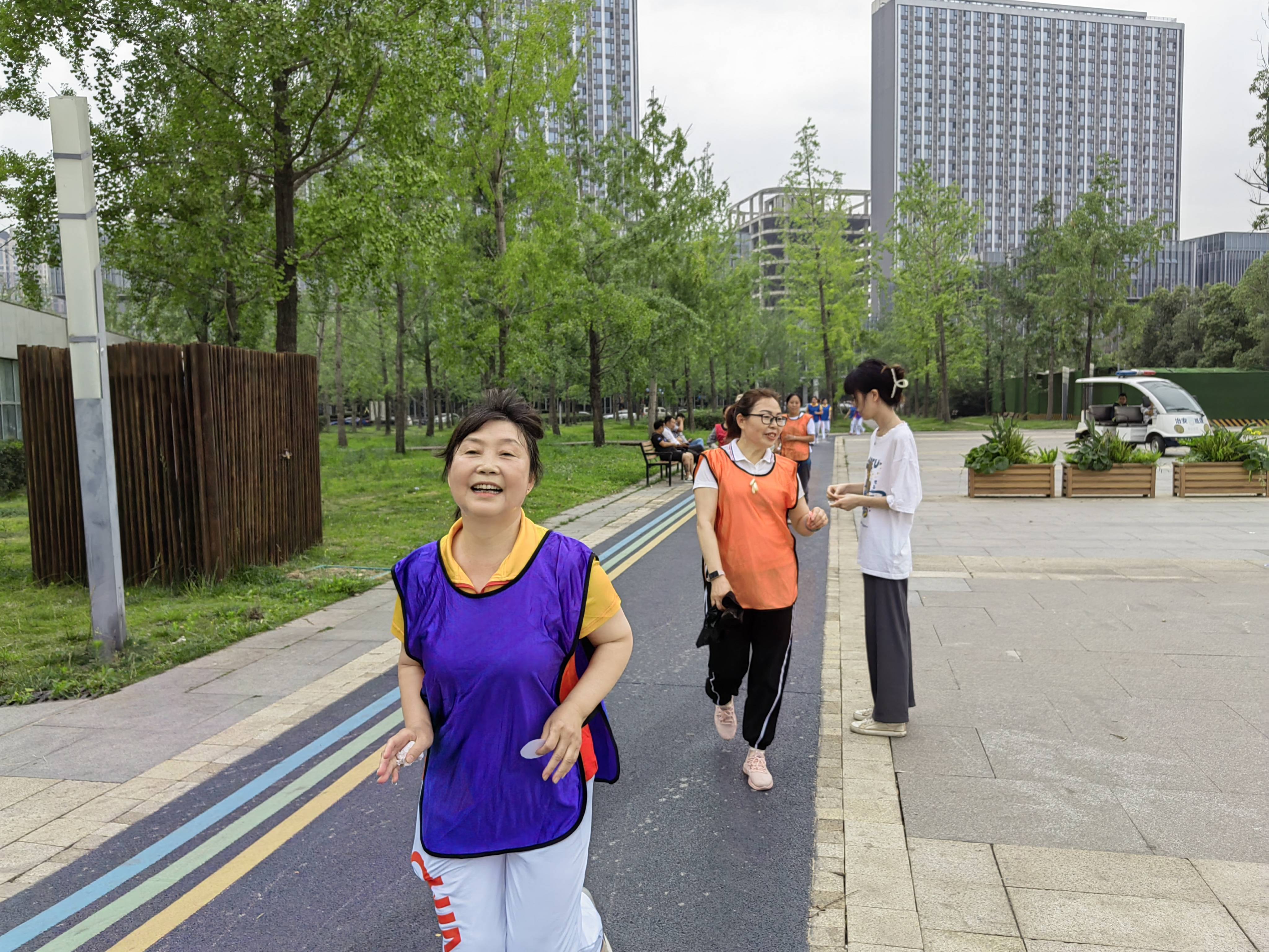 表演结束,大家一起进行了热身运动,随着一声号令,一个个飒爽英姿冲出起点,大家本着“友谊第一、比赛第二”的宗旨,虽有竞争,却也以健康、安全为基础。跑道绕湖而建,湖水波光粼粼、湖边百花争艳、跑道旁绿植环绕。能坚持跑的,迎风而上,感觉体力不支的,以竞走替代,真是“人在画中行,乐在跑步中”。