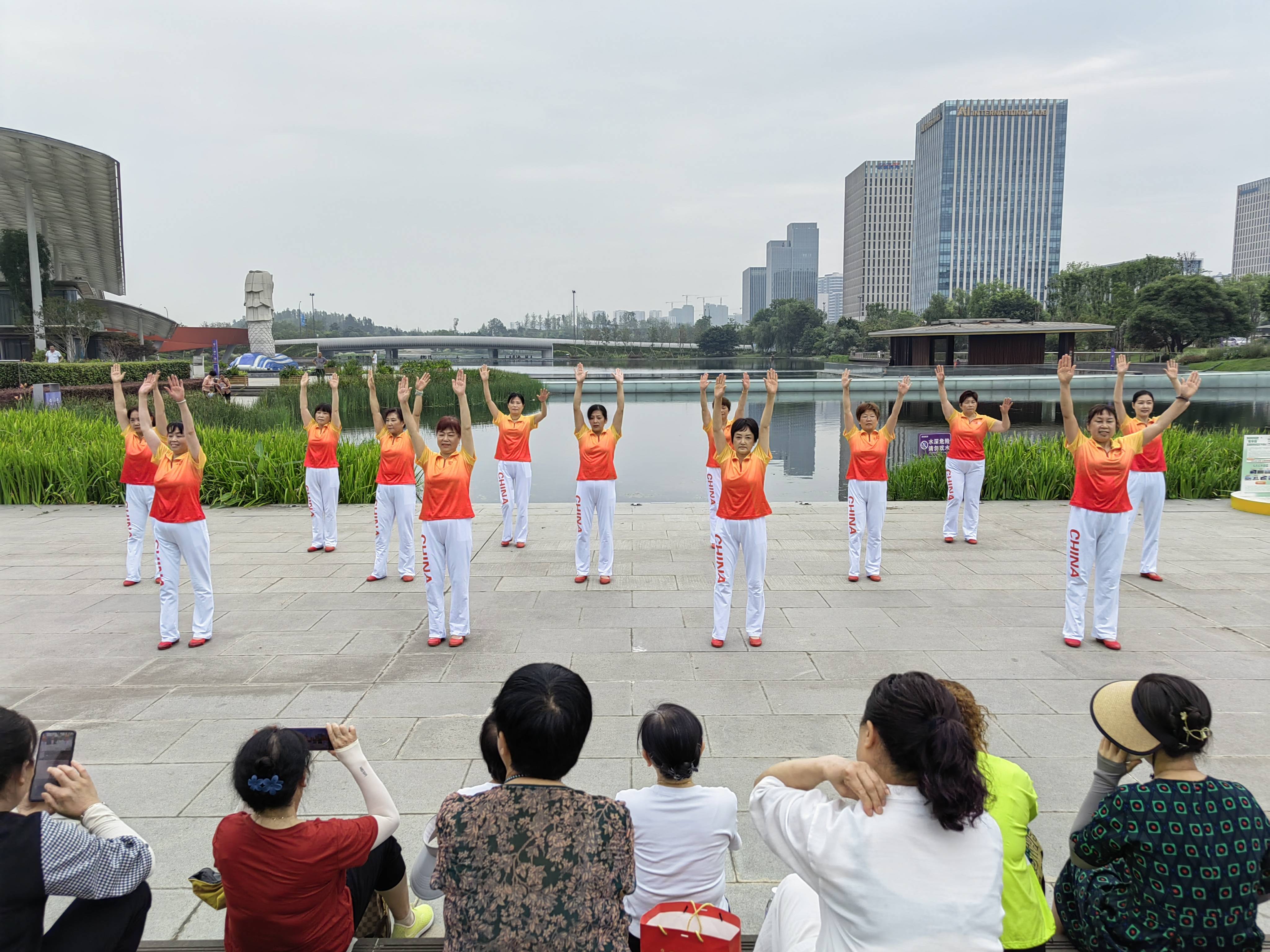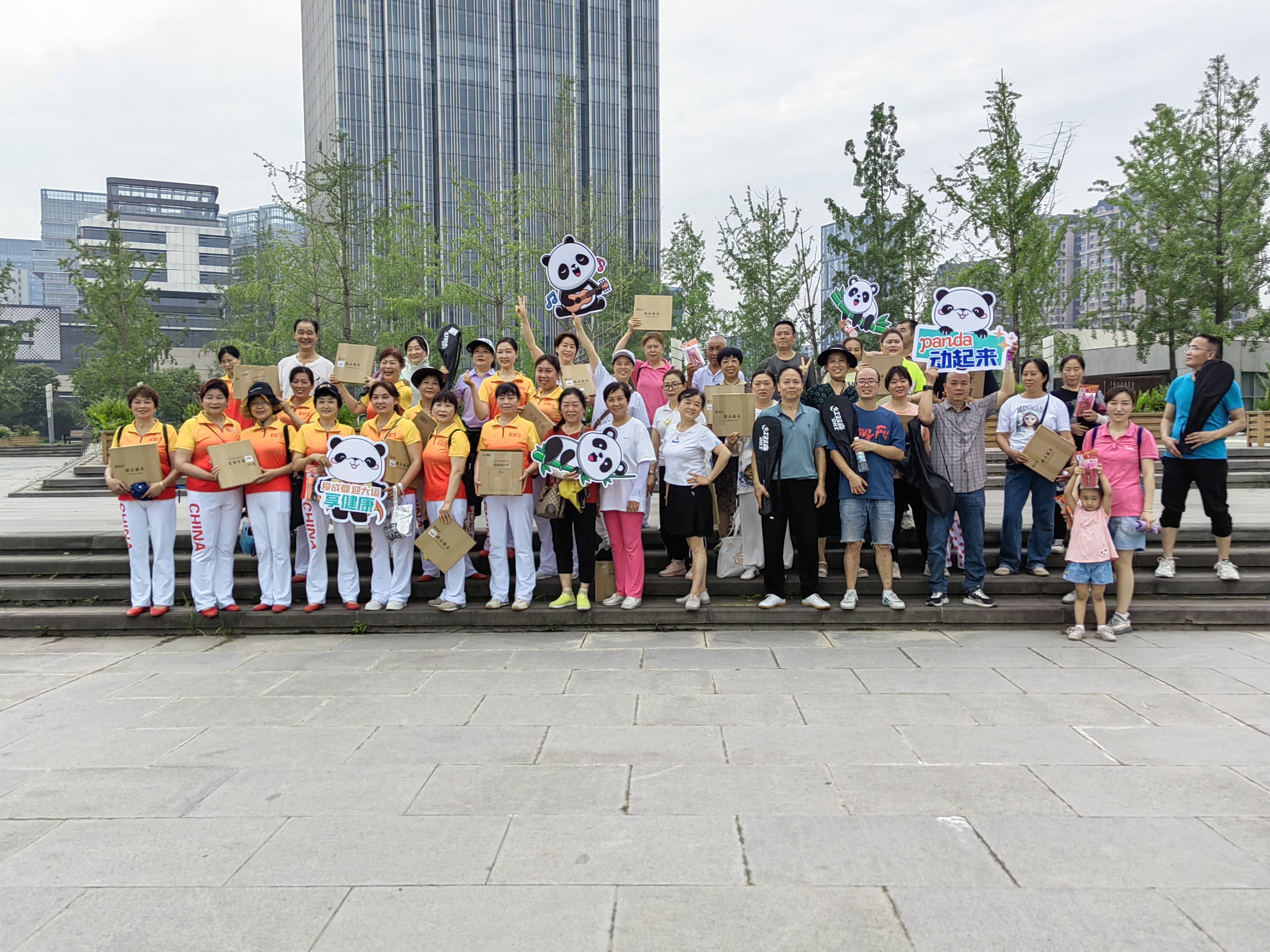 比赛开始前,首先来自成都高新好医生第一医院的医生,为大家讲解了运动健康的相关知识,并就运动中的自我保护对大家进行了提醒,对接下来的活动将全程开启医疗保障。紧接着观东社区和乐艺术团舞蹈队为大家表演了熊猫动动操,阿姨们穿着干净利落,一个个神采奕奕,在节奏欢快的“Panda之城”音乐声响起时,阿姨们模仿大熊猫爬树、啃竹子、得意洋洋等舞姿俏皮、诙谐,让大家忍俊不禁,现场更有居民跟着一起跳起来,感受欢乐。